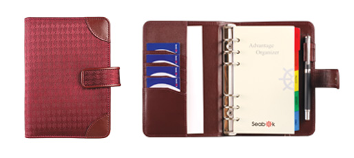 Feature:with document pocket ,6 rings binder ,pen loop,pad holder , button closure.