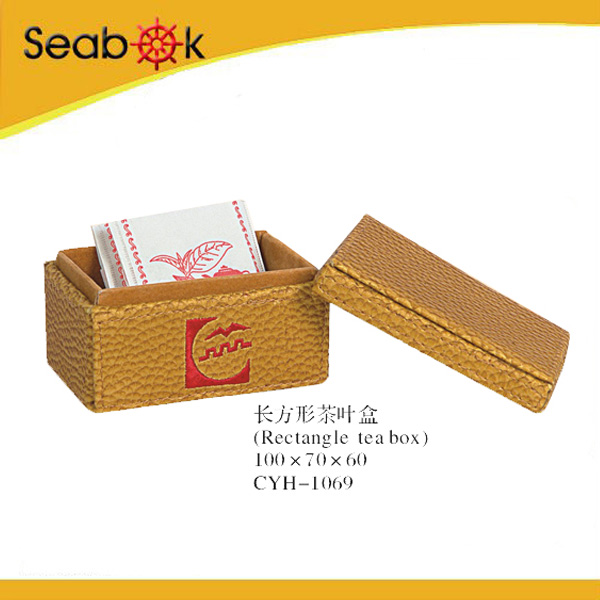 CYH1069 1.Item number:CYH1069 2.Size:3.9X2.8X2.4 inch 3..Material:PU 4.Cool golden fashion color 5.High quality box design for tea box 6.Widely used in hotel,resterant and home
