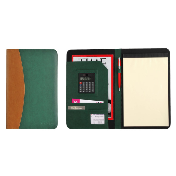 inner with dcoument holder, business card holders,pen loop and notepad on right inside,clearID window,20pages notepad |