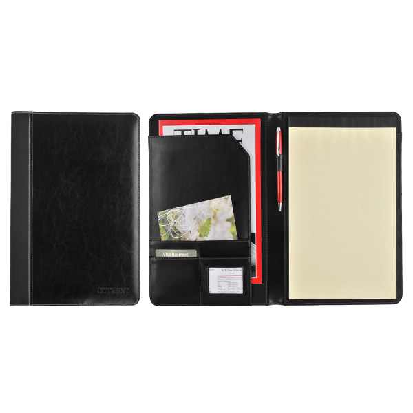 1.Item No.: A41226 2.Size:25*32.5*1.5com 3.OUTSIDE Material: PU 4.NSIDE Material: PU 5.Description:inside with card holder,pen loop,A4 standard paper notepad,pocket,mesh ID window,20pages notepad 6.Packing: Each in a polybag + 20 sheets of 60G 1C printed in single page notepad . 7.ManagementCertification:ISO 9001:2008 8.Mode ofproduction:OEM/ODM orders are available.