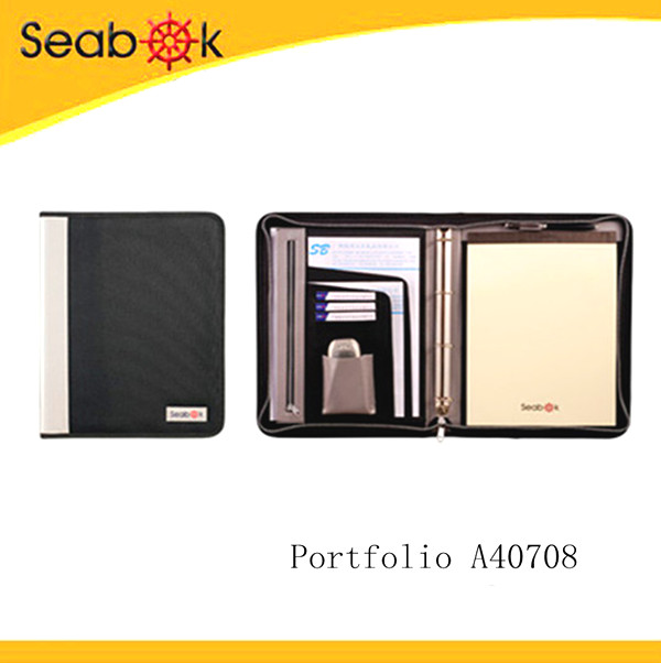 4. Detail: Portfolio documnts, A4-shape with inner pocketsfor business,cards and magazines,with note-pad and, pen loop, mobile phone holder.4ring binder.zipper closure.