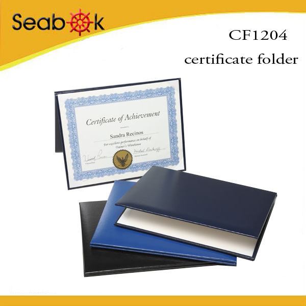 | CF1204 1)Item number:CF1204 2)Materiall:pu 3)Color: black ,blue,dark blue,other colors are available 4)Folding fashion folder for certificate 5)Customized size and style are welcome 6)Wholesale service with competitive price 7)Logo can be printed as you need 8)Widely use in school for certificate papers |