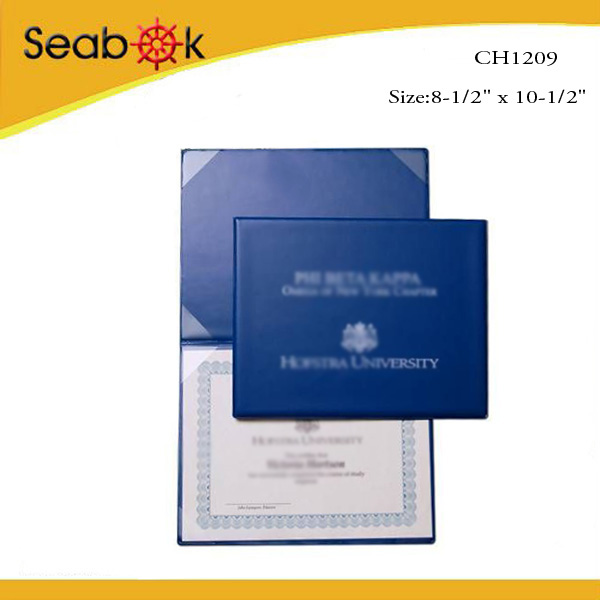 | CH1209 1)Item number:CF1209 2)Materiall:pu 3)Color: blue,other colors are available 4)Folding fashion folder for certificate 5)Customized size and style are welcome 6)Wholesale service with competitive price 7)Logo can be printed as you need 8)Widely use in school for certificate papers |