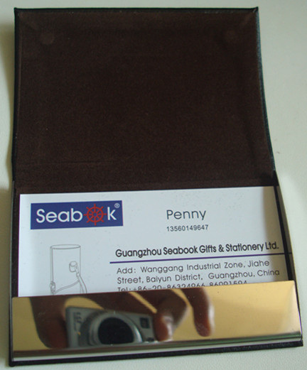 Leather with metal and have magnet button for business card holder andcredit card holder