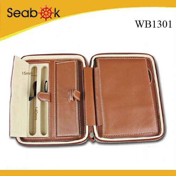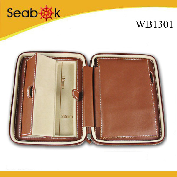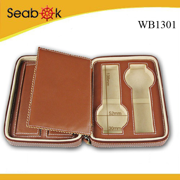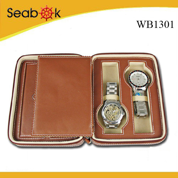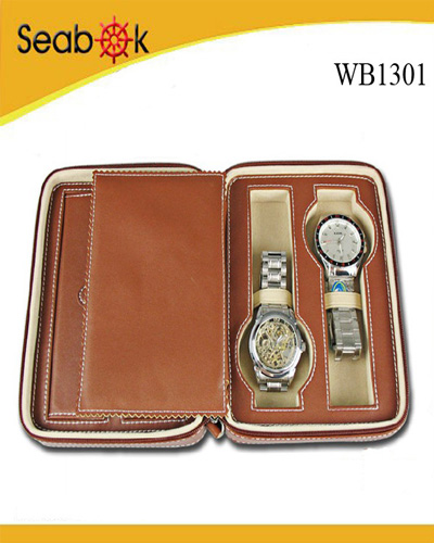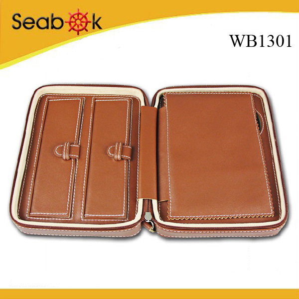 Genuine Leather 2-watch Case with Pen and Jewellery Holder