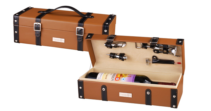 Wine box.with stopple,thermometer,filter,open ware,and can be put into one bottle of wine,botton closure.