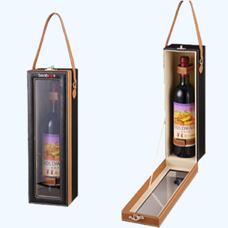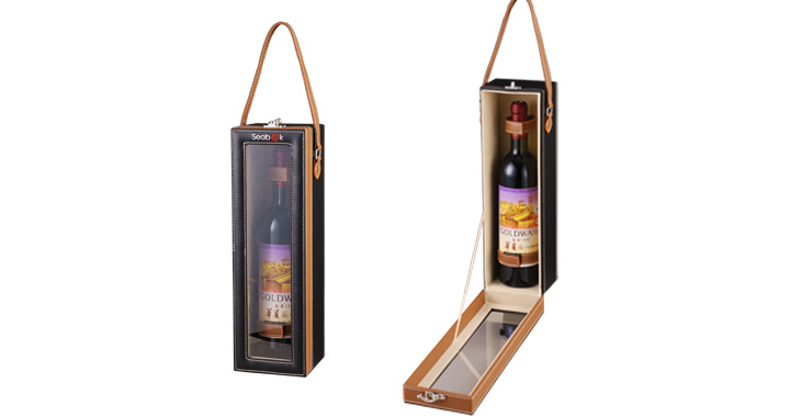 Two strap to keep wine bottle,with belt outside and metal lock closure.