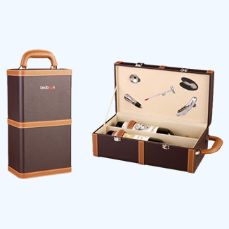 Wine box with filler,shrimp knife,filter,thermometer,open ware,and can be put into two bottles of wine.