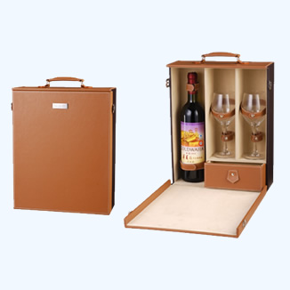 Wine box with a drawer,two sets of strap for cups,one set of strap for bottle.