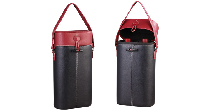 A belt outside the wine box,it can put two bottles of wine inside.
