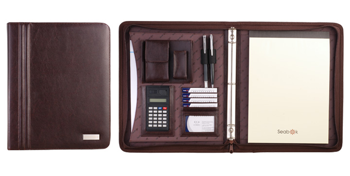 5.Closure: zipper closure 6.Feature: With cellphone holder, u-disk holder ,pen loop ,calculator holder ,multi card holder ,3ring binder ,note pad holder ,withmetal plate .