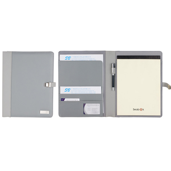 4..Feature: A4 shape Portfolio with file pocket,square caculator ,business card pocket ,two pen loops and knotepad pocket .Magnetic button closure.