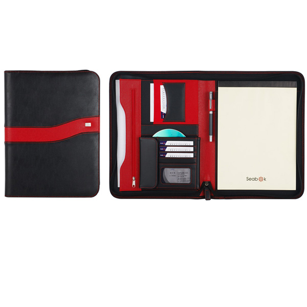 4..Feature: A4-shape Portfolio with document pockets,multi-business card pocket,Cd holder case ,pen loop and notepad pocket .zipper closure