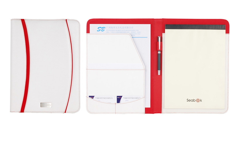 4..Feature: Simple elegant A4-shape potfolio in fresh ,modern design. with integrated document and business card pockets ,pen loop ,notepad pocket on right and xeterior pocket. |