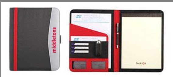 The folder with card holders ,document holders , on the left inside ,pad pocket+pen loop on the right inside .