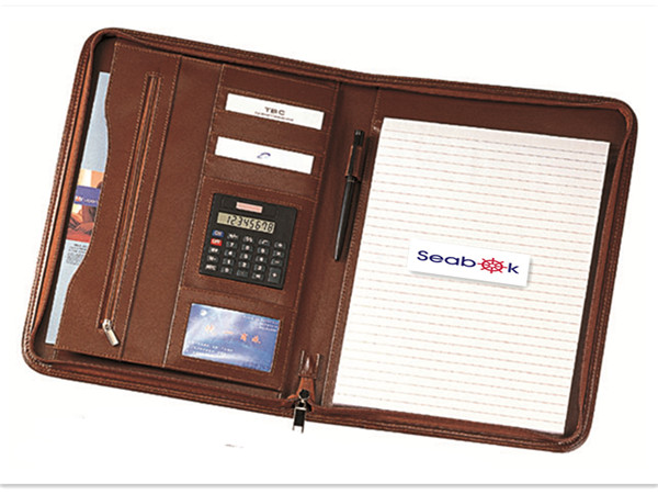 Feature:inner with document pocket, card pocket,calculator, pen loop and A4 standard notepad.