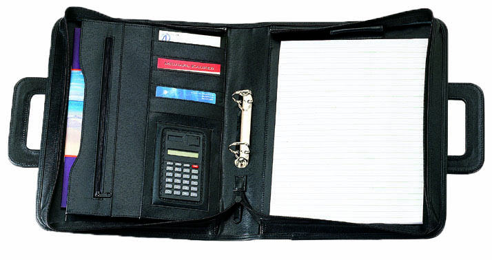 Feature:inner with card pocket,ring binder, calculator and A4 standard notepad.