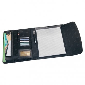 The folder with card holders ,document holders on the left inside ,pad pocket+pen loop on the right inside .